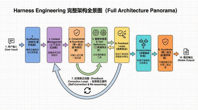 Harness Engineering 是专注于构建 AI 智能体运行的完整管控环境的工程学科,通过全链路约束与自动化验收,让非确定性的大模型在既定规则内稳定工作,成为可靠的生产力工具。